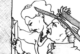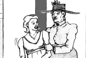 The elder drags her off to the carriage, parked nearby and waiting. |