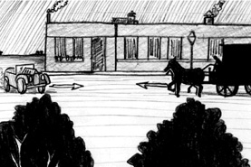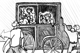 ...and the carriage begins to speed down the road... |