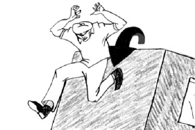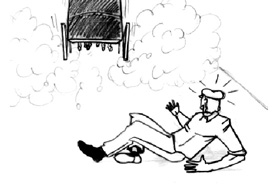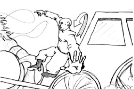He dives out of the way just before the assault of the carriage... |