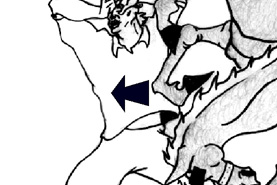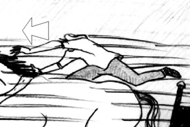 ...but in the maneuver his body falls... |